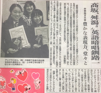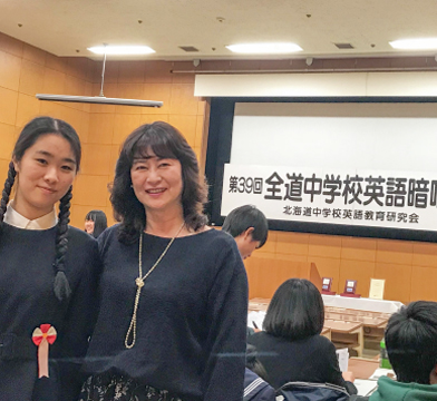 何人もの中学生の生徒さんたちが、校内や市内の英語暗唱大会などで自然で美しい発音が評価され、優秀な成績を収め表彰されたり、全道大会へ出場したという嬉しい報告を受けております。 -