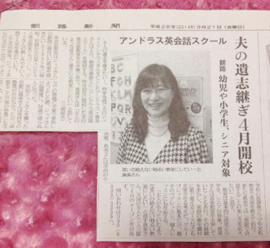 2013年の10月に夫が急病で亡くなり、18年と10ヶ月続いたスクールを一度は閉校しましたが、2014年4月より夫の遺志を継いで名称を「アンドラス 英会話スクール」と改め、再スタートいたしました。