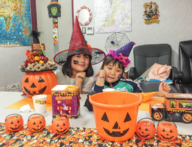 アメリカでの生活経験を生かし日本とアメリカの文化・習慣の違いを紹介したり、ハロウィン、クリスマスなどのクラスパーティーも行います!